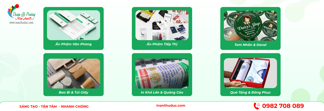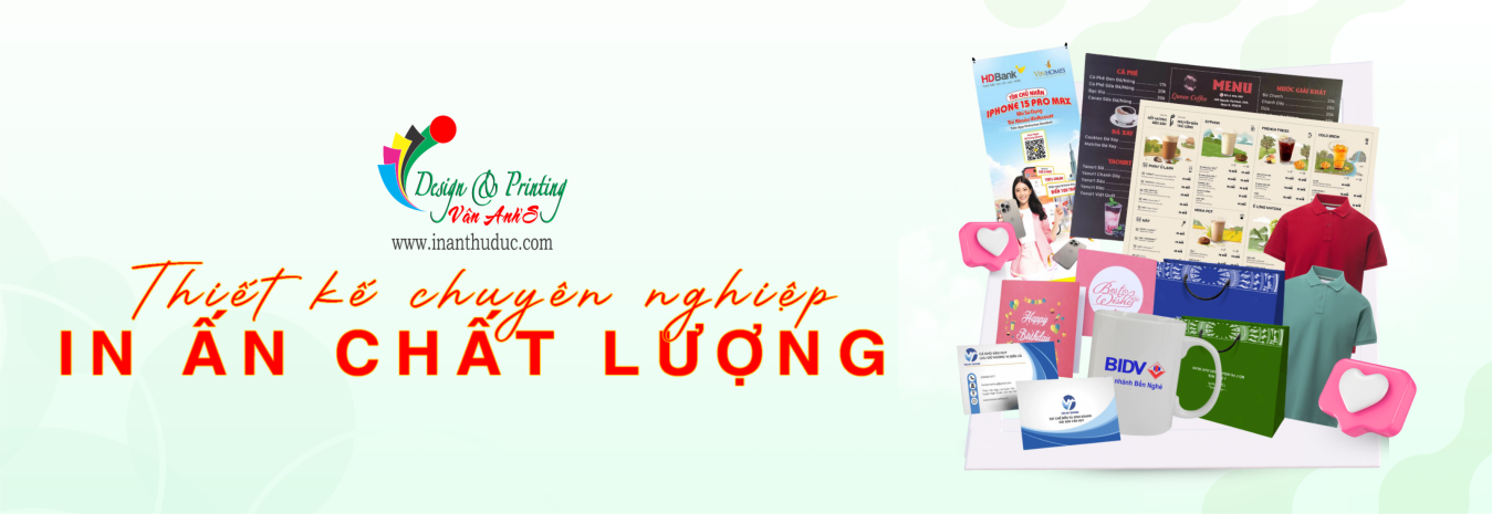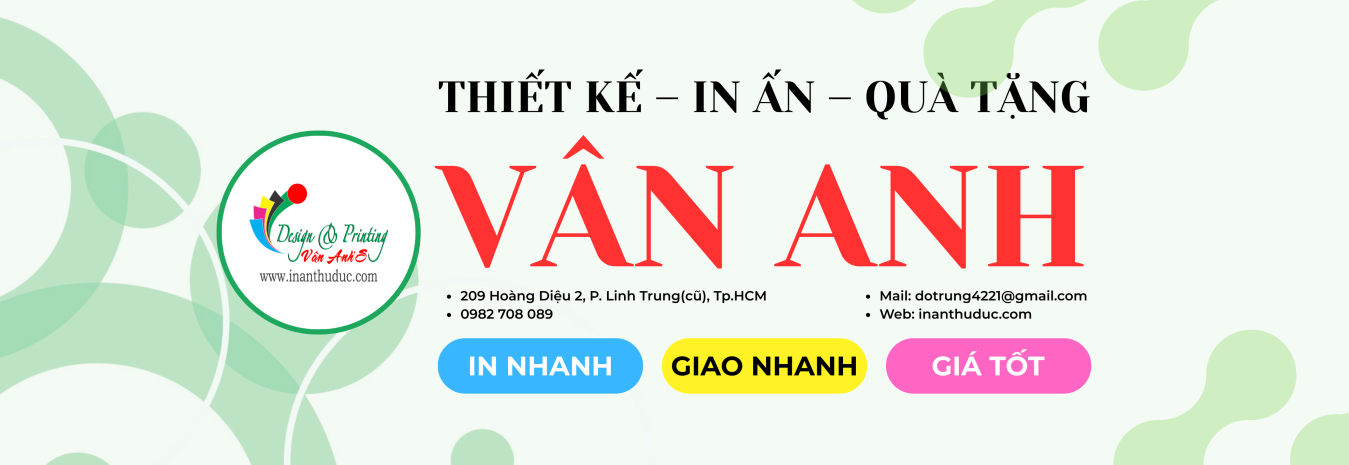 In Ấn Vân Anh là đơn vị thiết kế – in ấn – quảng cáo tại Thủ Đức với hơn 25 năm kinh nghiệm. Chuyên in ấn phẩm văn phòng, bao bì hộp giấy, in PP – Hiflex, decal, bảng hiệu mica alu, quà tặng. Giá xưởng – in nhanh – giao toàn .
